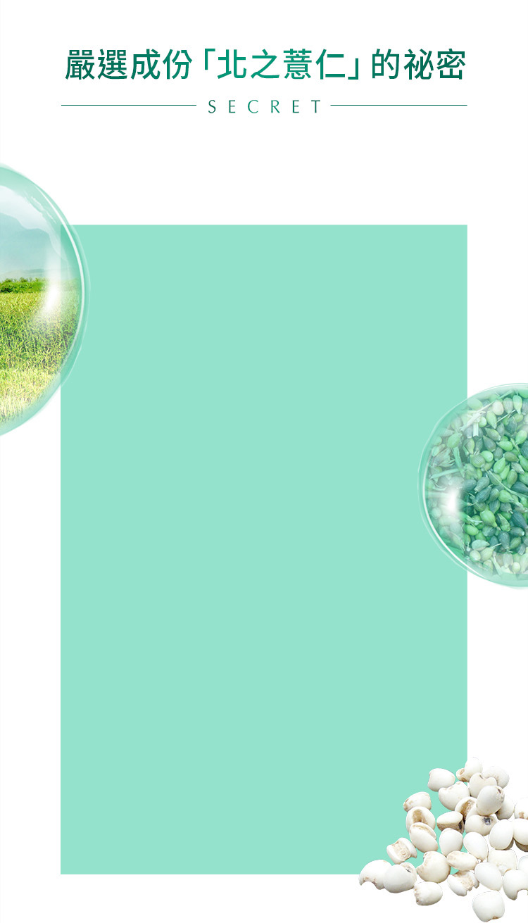 健康化妝水採用的「北之薏仁」不僅為有機栽培,更在符合日本農林水產省制定之JAS規格的田地裡培育成功。透過經驗豐富且專業的契作農家細心照顧,最小限度地使用農藥,盡可能使其自然生長」,是大自然恩賜的美顏聖品。